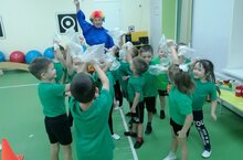 В старших группах (воспитатели Гибадуллина Г. А. и Фаррахова Р. Г.) прошло развлечение "Удивительные опыты", где клоуны Познайка и Обучайка ознакомили ребят со свойствами воздуха и воды, проводились опыты, а также весёлые эстафеты! Ребята с удовольствием провели время!