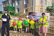 В рамках недели безопасности в МБДОУ #11 "Шатлык" с участием детей старшей группы была проведена акция по профилактике и предупреждению детского дорожно - транспортного травматизма 'Возьми ребенка за руку "