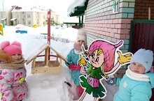 На участке старшей группы в снежном городке всех встречает весёлая и общительная «Умница». Она приглашает ребят в снежный город и предлагает развесить для птиц кормушки, сделанные своими руками, чтобы дети не забывали их покормить и понаблюдать за ними.