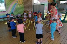 В МБДОУ № 11 "Шатлык" сегодня прошло развлечение « В гости к солнышку». Дети пели, танцевали, играли, отгадывали загадки вместе с солнышком. Вот еще один день с радостью прошел в детском саду -