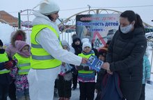 В рамках акции "Ребёнок - главный пассажир" в МБДОУ №11 "Шатлык" дети подготовительной группы вместе с воспитателем провели флешмоб и раздали родителям памятки "Автокресло - детям"
