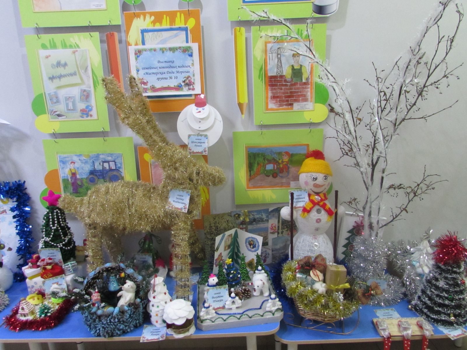 В детском саду прошёл конкурс новогодних поделок и семейного творчества «Мастерская Дедушки Мороза», целью которого было развитие художественного вкуса, фантазии, инициативы воспитанников, родителей и педагогов.