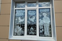 Дети вместе с родителями украсили окна символическими рисунками и лозунгами, посвящёнными Великой Победе!