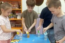 В подготовительной группе "Бельчонок", провели эксперимент с сосновыми шишками и водой. На тему "Почему открываются и закрываются сосновые шишки?" В ходе исследования дети выявили, что чешуйки шишки закрываются от воздействия влажности.