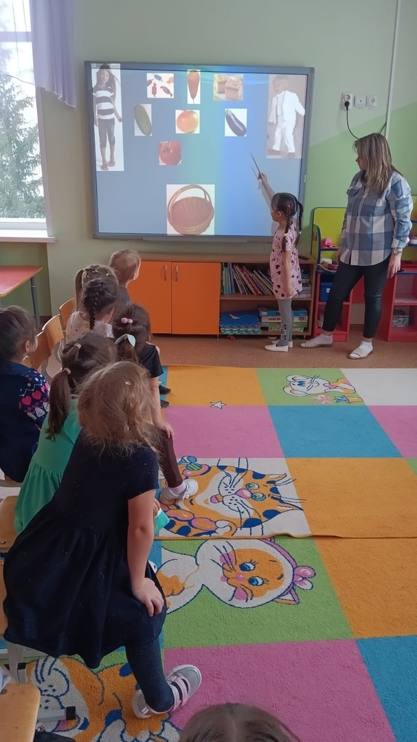 Говорили о правильно питании, играли в интерактивную игру "полезные продукты" Самостоятельно выбирали продукты для приготовления супа. Играли в игру "угадай фрукт по вкусу". Дети много узнали полезного и интересного.