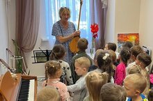 Воспитанники старших групп посетили детскую школу искусств. Музыкальные работники школы рассказали детям о музыкальных инструментах, играли на пианино, на домбре, на баяне, показали кабинеты, где проходят занятия по хореографии и музыке.