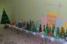 В детском саду проходит выставка новогодних поделок "Елочка красавица". Все группы принимают активное участие.