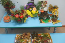 Во второй группе раннего возраста "Смешарики", родители с детьми оригинально оформили выставку "Осенние фантазии". Спасибо за участие.