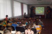 Сегодня для детей нашего детского сада, методистом из кинотеатра «Победа» был показан видеоролик по профилактике дорожно-транспортного травматизма «Улица полна неожиданностей». Затем после его просмотра с детьми была проведена викторина на повторение правил дорожного движения и дорожных знаков.