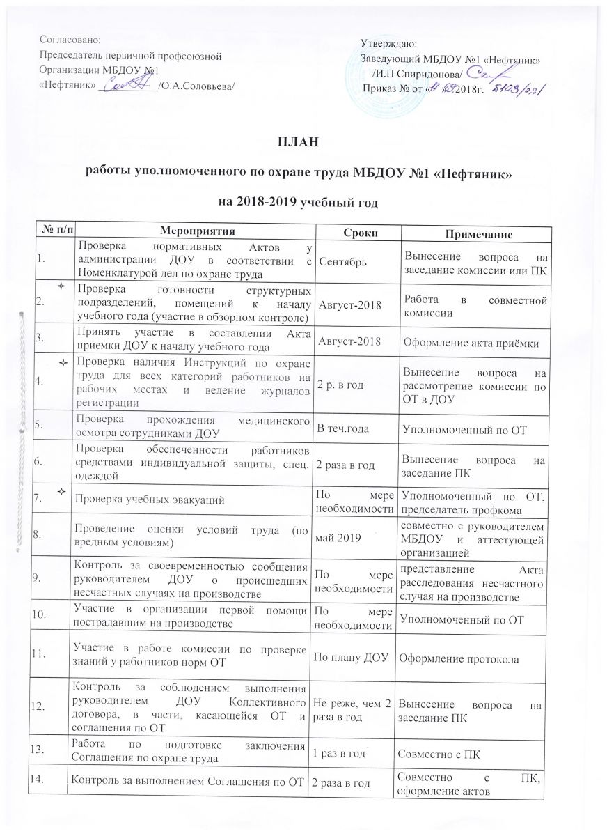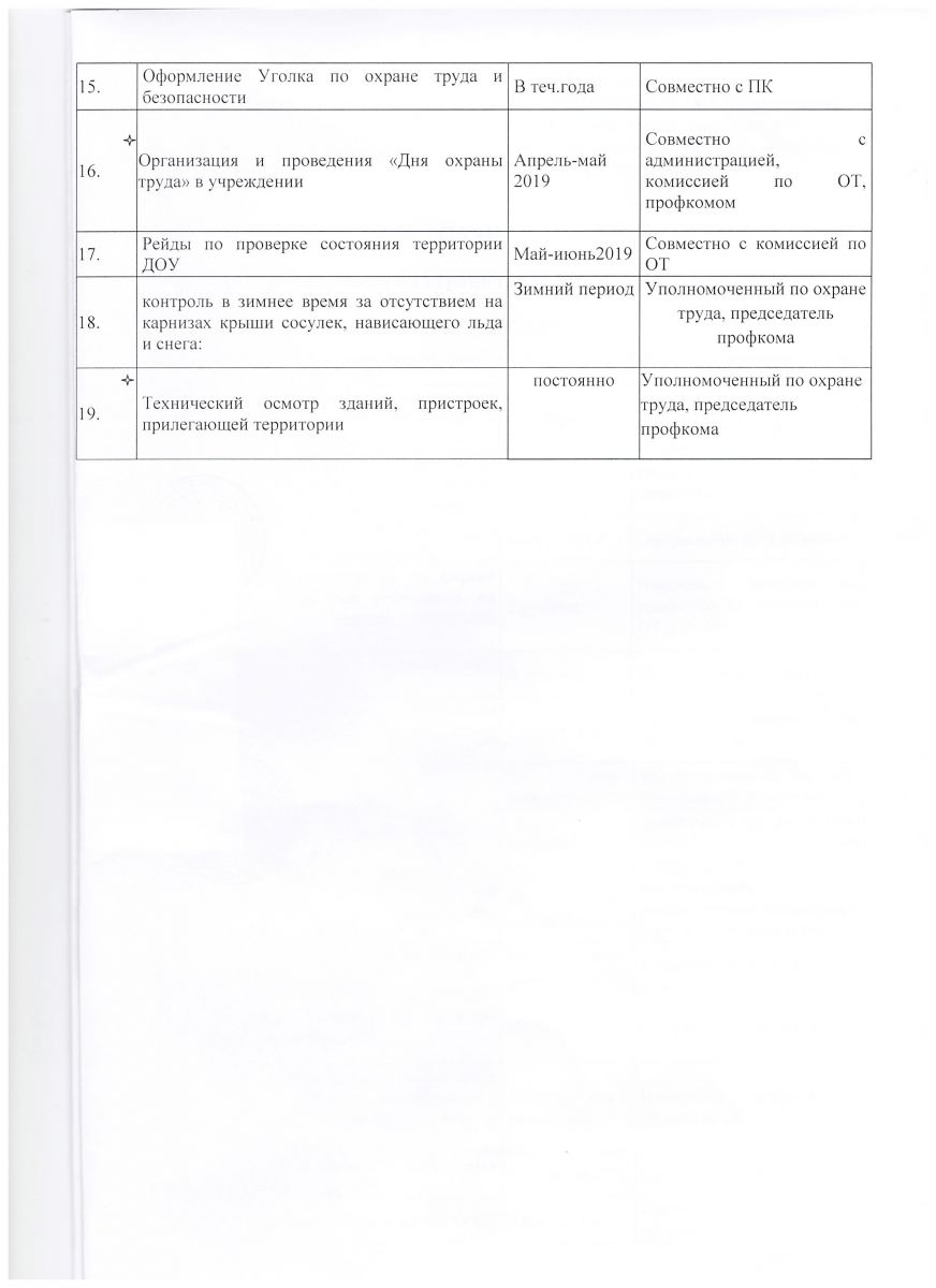 План работы уполномоченного по охране труда на 2019 -2020 г.