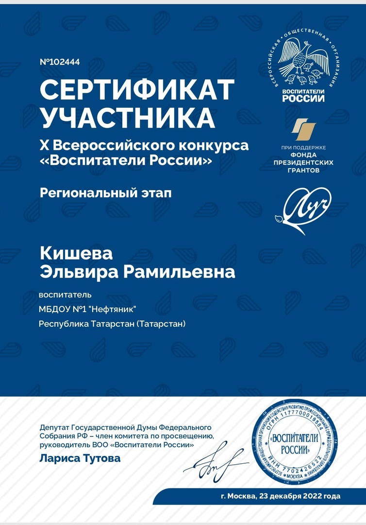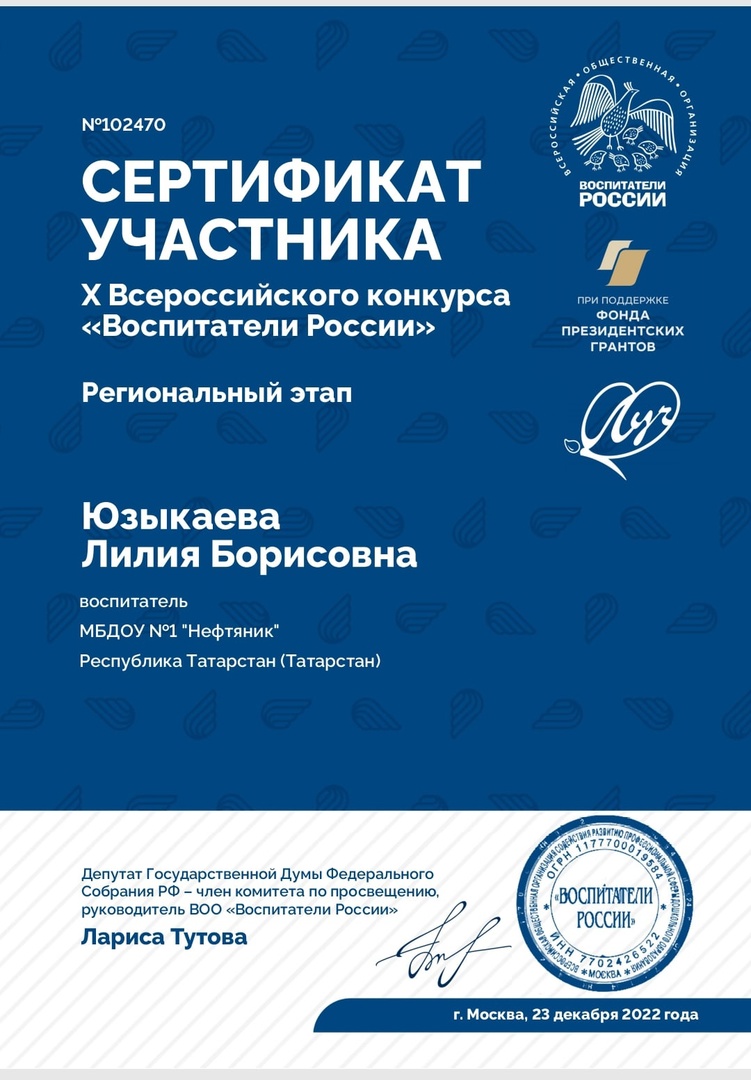 Педагоги МБДОУ №1 «Нефтяник» СоловьеваО.А., Кишева Э.Р., Юзыкаева ЛД.Б. приняли активное участие в X Всероссийском конкурсе «Воспитатели России». Поздравляем желаем творческих успехов!!!