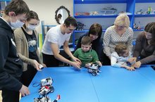 В рамках декады инвалидов сегодня в Доме детского творчества прошло ознакомительное занятие по робототехнике. Педагог Алмаз Азатович встретил в своем кабинете ребят с мамами и сотрудников соцзащиты. Гостям были продемонстрированы различные двигающиеся роботы.Затем каждый из детей смог рассмотреть , поддержать, поиграть с роботами. Дети и родители остались довольны общением с техникой.