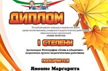 Поздравляем Маргариту Станиславовну, педагога вокального объединения "Семинотка" МБУ ДО "ДДТ", педагога-организатора МБОУ "СОШ №1", с победой в республиканском конкурсе творческих работ среди педагогических работников "Осень золотая".
