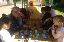 16 июня в ЗОЛ «Солнышко» педагог ДДТ Ольга Анатольевна провела с ребятами мастер-класс «Маленький пейзаж на спилах». Ребята с большим увлечением рисовали акварелью пейзаж на деревянных заготовках. Получились очень интересные работы.