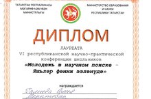 Ученица 9 класса Галиева Алия МБОУ "Кузембетьевская СОШ", посещающая объединение ДДТ "Английский вокруг нас", стала лауреатом республиканской научно-практической конференции «МОЛОДЕЖЬ В НАУЧНОМ ПОИСКЕ, ПРИУРОЧЕННАЯ К 100-ЛЕТИЮ СО ДНЯ РОЖДЕНИЯ ГАЛИ АКЫША» с проектной работой «Интернациональные слова как опорные элементы при изучении английского языка». Научный руководитель - Мухамадиев Д.Ф. Поздравляем!!!