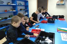 Учащиеся начальных классов на занятиях по робототехнике осваивают конструкторы собирая мини-роботов.