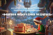 Дом детского творчества приглашает учащихся 2- 4 классов принять участие в квесте "Фабрика новогодних подарков", который пройдет с 16 по 25 декабря 2024 года.