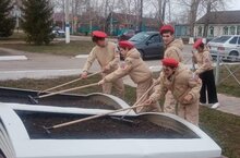 В преддверии празднования 78-ой годовщины Победы в Великой Отечественной Войне, в целях формирования у подрастающего поколения патриотического сознания экологического воспитания, воспитания уважения к прошлому своего народа члены отряда "Юнармия" МБОУ "Гимназия" (руководитель Набиева А.Н.) приняли участие в благоустройстве школьной территории.