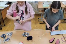 В Доме детского творчества объединение швейная мастерская "Пуговка" девочки шьют себе стильные резинки для волос, придают старым ободкам новый вид.