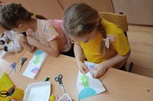 Воспитанники объединения "Рукоделие" (учащиеся 1 класса СОШ №1) активно участвуют в мероприятиях и конкурсах . Воспитанники выполняют работу на конкурс "Таинственный космос" на выставку творческих работ ко дню космонавтики.