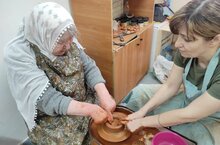 В рамках благотворительного проекта «Путь к совершенству безграничен» при поддержке грантов ПАО «Татнефть» педагог Дома детского творчества Гилязетдинова Ольга Анатольевна провела мастер–класс по изготовлению керамической посуды на гончарном круге с получателем социальных услуг Гаязетдиновой Данией Ярмухаметовной, которая проживает в Мензелинском доме-интернате для престарелых и инвалидов.