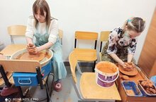 Педагог ДДТ, руководитель проекта ""Путь к совершенству безграничен" провела для сотрудников Дома детского творчества мастер класс "Центровка на гончарном круге".