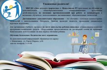 Уважаемые родители! Дом детского творчества приглашает на обучение по дополнительным общеобразовательным общеразвивающим программам детей-инвалидов, не имеющих противопоказаний при работе за компьютером и желающих обучаться с использованием дистанционных образовательных технологий. Для организации учебного процесса устанавливается комплект программно-технических средств по месту жительства ребенка. Обучение бесплатное. Количество мест ограничено. Обращаться по телефону ДДТ 3-14-08.