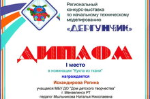 В г. Набережные Челны завершился региональный конкурс по начальному техническому моделированию «Дергунчик». Поздравляем наших воспитанников творческого объединения «Рукоделие» Сабирову Азалию – 1 место в номинации «Кукла сувенирная», Искандирову Регину - 1 место в номинации Кукла из ткани», педагога Мыльникову Наталию Николаевну - 1 место «Кукла сувенирная», Гайнутдинову Валерию занявшую 3 место (педагог Талипов Р.И.) в номинации «Кукла – из древесных материалов». Молодцы! Желаем дальнейших творческих успехов и достижений!