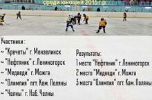 Открытое Первенство Мензелинского муниципального района РТ по хоккею среди юношей 2015 г.р.
