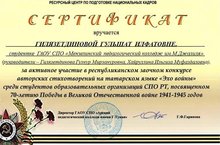 Студентка 5Д группы Гилязетдинова Гульшат участвовала в республиканском заочном конкурсе авторских стихотворений на татарском языке «Эхо войны» среди студентов образовательных организаций СПО РТ, посвященном 70-летию Победы в Великой Отечественной войне 1941-1945 годов.