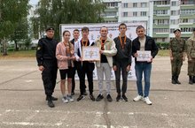 Исрафилов Булат 2Ф, Степанов Данил 2К, Белышев Илья 2К, Нафиков Реналь 2К, Тюкменова Рената 1А под руководством преподавателя безопасности жизнедеятельности Шайхутденова А. И.