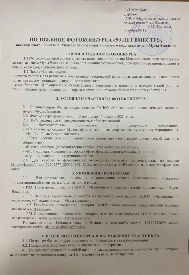 ГАПОУ "Мензелинский педагогический колледж имени Мусы Джалиля" объявляет ФОТОКОНКУРС «90 ЛЕТ ВМЕСТЕ!», посвященный своему 90-летию.