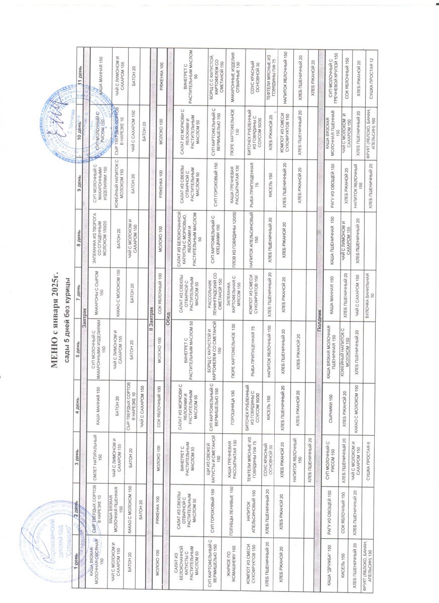 Меню ежедневного горячего питания.