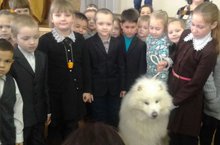 Сегодня в школе работал кинолог! Для 1-2 классов прошло мероприятие о том как нужно вести себя с нападающей собакой или стаей собак. Как защититься? Можно ли отпускать домашнюю собаку бегать по улице? Можно ли гулять с собакой без родителей? На эти и многие другие вопросы дети получили ответы. В заключении т. Наташа,как она представилась,познакомила детей с питомицей Приюта для животных собачкой Бусинкой и домашней собакой - самоедом! Дети пообщались с животными..... Просто нужно видеть глаза наших детей! Они такие добрые и непосредственные! Равнодушных не было!