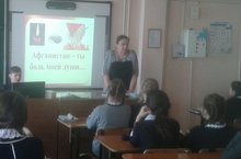 22 февраля в 8а классе Яновой Л.С. был проведен классный час «Дорогами афгана», посвященная 27-й годовщине вывода советских войск из Афганистана. В ходе беседы ребята познакомились с историческим значением Афганской войны и причиной ввода советских войск в Афганистан. Ребята по ближе познакомились:
