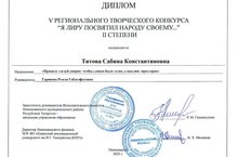 Титова Сабина, ученица 9а класса, стала призером в 5 Региональном творческом конкурсен "Я лиру посвятил народу своему..."