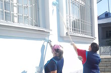 Коллектив готовится к приемке школы: активно идет ремонт фасада и кабинетов.
