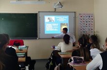 В рамках профориентации 7А (кл.рук. Федотова С.Н.) и 7Б (кл.рук. Габдуллина Н.М.) классы встретились на пресс-конференции с актёрами республиканского русского театра драмы и комедии республики Калмыкия. В тёплой и дружеской обстановке актёры рассказали о своей работе, своём родном театре и поделились своими положительными впечатлениями о нашем городе, побывав на Набережной, в краеведческом музее и пообщавшись с местными жителями, а также зрителями их представления.