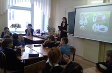 В 1 А классе студенты педагогического колледжа провели для ребят внеклассное занятие "Разговор о правильном питании"