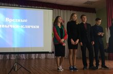 На линейке среди старшеклассников выступил 9А класс по теме "Нет вредным привычкам!".