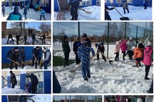 В дни проведения месячников экологии, учащиеся школы разбрасывали снег, убирали мусор на открытых участках.