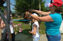 В пришкольном лагере прошел традиционный детский сабантуй. Ребята состязались на станции "Пролевайка", "Отрезайка", "Помогайка". Паровозик каждого отряда следовал по выбранному маршруту. На каждой станции ребят ждали необычные призы.