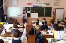 27 апреля в 1б классе Галлямова Н.Н. провела урок русского языка по теме :«Сочетания чк, чн» с использованием ИКТ. Интерактивную доску и ИКТ применила для актуализации знаний ,открытия нового материала ,парной работы, самостоятельной творческой работы учащихся ,контроля знаний(тест) .Галлямова Н.Н в интерактивном режиме использовала возможности доски mimio. Использование ИКТ помогло вовлечь каждого учащегося в активный познавательный процесс. Урок получился увлекательным, результативным.