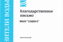 Наша школа приняла участие во Всероссийском эко-уроке "Хранители воды" и получила Благодарственное письмо за вклад в Федерально-целевую программу "Вода России". 5 А класс (классный руководитель Горохова Т.Л.) получил Диплом об участии во Всероссийской акции.