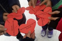 Так как, праздник День святого Валентина совпал с проведением предметной недели иностранных языков, сегодня учителями иностранного языка и учащимися 5б класса была проведена акция "Подари валентинку". Ребята сделали валентинки и подписали их на английском и немецком языках. Затем, под руководством Коростиной Н.Ю. Они вышли на улицу и поздравили прохожих.