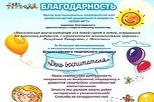 С 19 сентября по 16 октября воспитанники школы-интерната участвовали в дистанционном Всероссийском творческом конкурсе «День воспитателя», в котором одержали победу: Коршунов Дмитрий (1 место) – руководитель Соловьева Е.С., Артюшина Анастасия (1 место) – руководитель Гурьянова Ю.В., Афанасьев Станислав (1 место) – руководитель Шамсутдинова Р.М., Судакова Оксана (2 место) – руководитель Нурыев А.Н., Иванов Алексей (2 место) – руководитель Хохлова Э.М., Саубанов Артур (2 место) – руководитель Хадеева Р.Г, воспитатель Зайнуллина А.Ф. (2 место). Поздравляем участников и желаем им дальнейших творческих успехов.