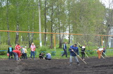 16 мая учащиеся школы-интерната совместно с коллективом вышли на субботник по посадке картофеля.