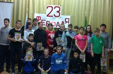 23 февраля педагог-организатор Соловьева Е.С. организовала для детей интеллектуально-познавательную игру, посвященную празднику. В конце мероприятия детям были вручены сладкие подарки. Вечером того же дня дети посмотрели отечественный мультфильм «Савва – сердце воина».