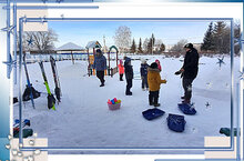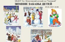 Обьявление о предстоящем празднике "Зимние забавы детей". В программе веселые игры, катание на санках и лыжах. 03.01.2025