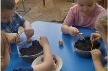 В детском саду "Тамчыкай" дети посадили в землю лук. У одной луковицы мы отрезали верхушку, у другой ее резать не стали. Хотим посмотреть, какая из них первее вырастет. МЫ будем ухаживать за ними. 01.02.2024